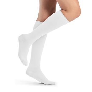 Katoenen steunkousen bieden ademend comfort, waardoor ze ideaal zijn voor dagelijks gebruik. Het natuurlijke materiaal absorbeert vocht en houdt de huid droog, terwijl het zacht aanvoelt tegen de huid en irritatie voorkomt.